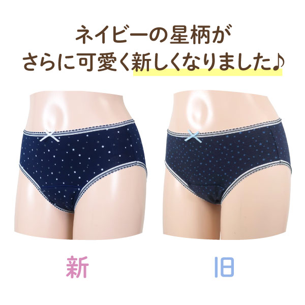 日本製 15cc ジュニア 吸水サニタリーショーツ 可愛い星柄とリボン 6層シート 生理用 【メール便送料無料】 吸水 グレー/ネイビー 150/160 2色2サイズから選択