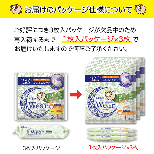 ソフティーン 女性用 ショーツ型ナプキン オーガニックウェア L-XLサイズ 1個入×3セット【メール便送料無料】 夜用3枚 品番:XINS-SOFT-OW-XL1-3