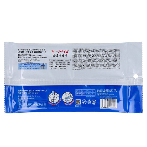 iiもの本舗 ラージサイズ 冷感タオル 1枚入 1個 1枚で全身ふける 60×40cm 無香料 【メール便可】 汗拭きシート クールタオル使い捨てタオル 品番:BIG-COOL-TOWEL-1P