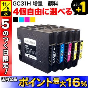 リコー GC31H互換インク 顔料タイプ 4個フリーチョイス 【今だけ4個→5個】 3,980円・送料無料 |