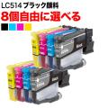 【送料無料、サポート付】 LC514 互換インク 8個セット フリーチョイス(自由選択) 純正と同じくブラックのみ顔料インク採用