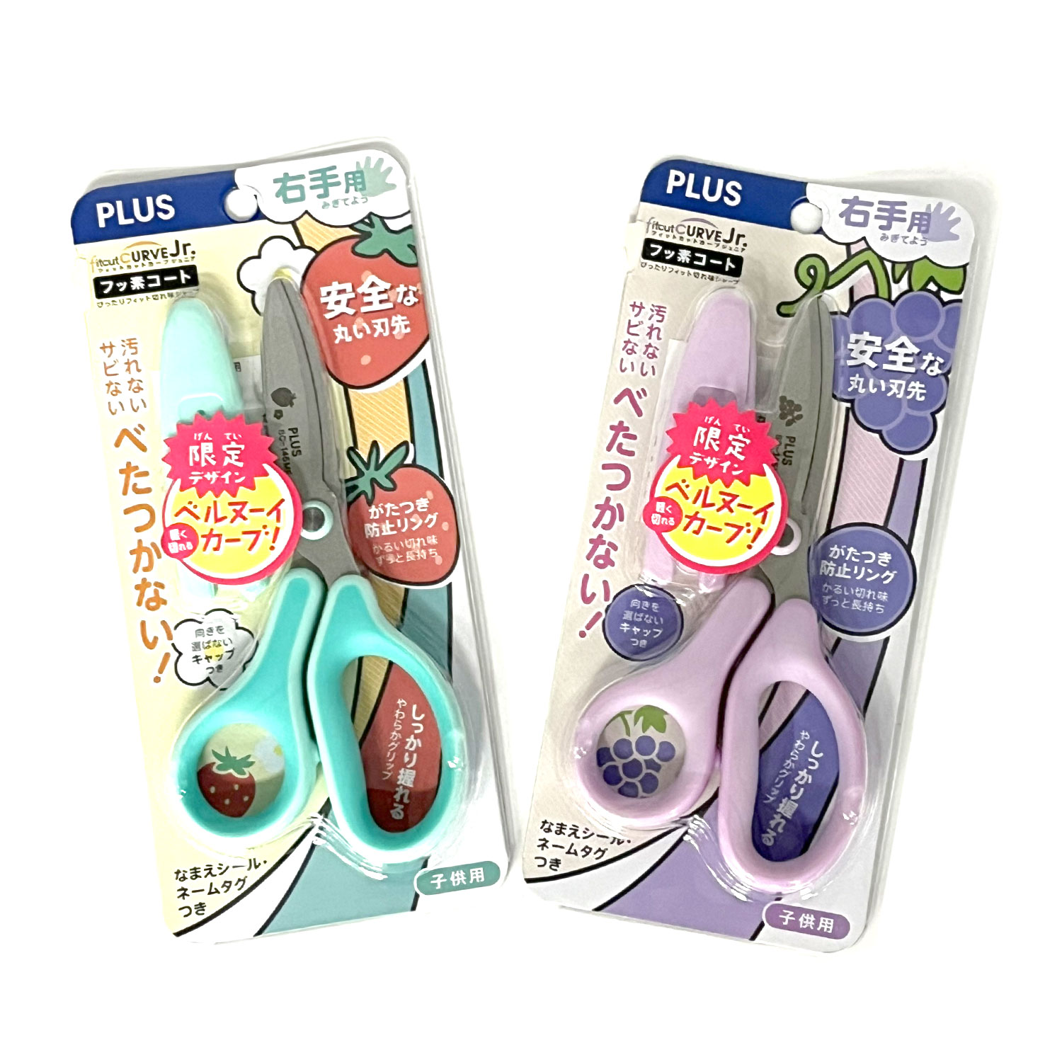 【限定】プラス PLUS こども用はさみ フィットカットカーブ ジュニア 右手用 くだものモチーフ ぶどう SC-145MF 【メール便可】 ぶどう