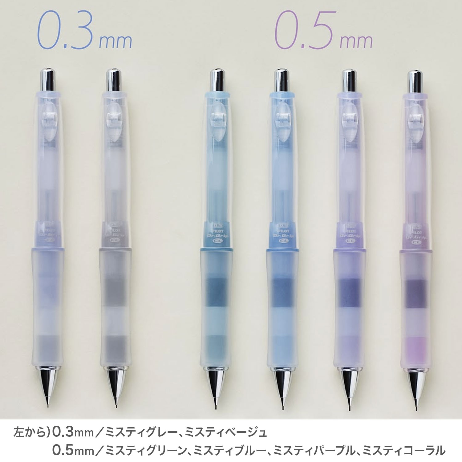 【取り寄せ品】PILOT パイロット ドクターグリップCL プレイボーダー ミストカラー 0.5 HDGCL-15【メール便可】全4色から選択 品番:HDGCL-15