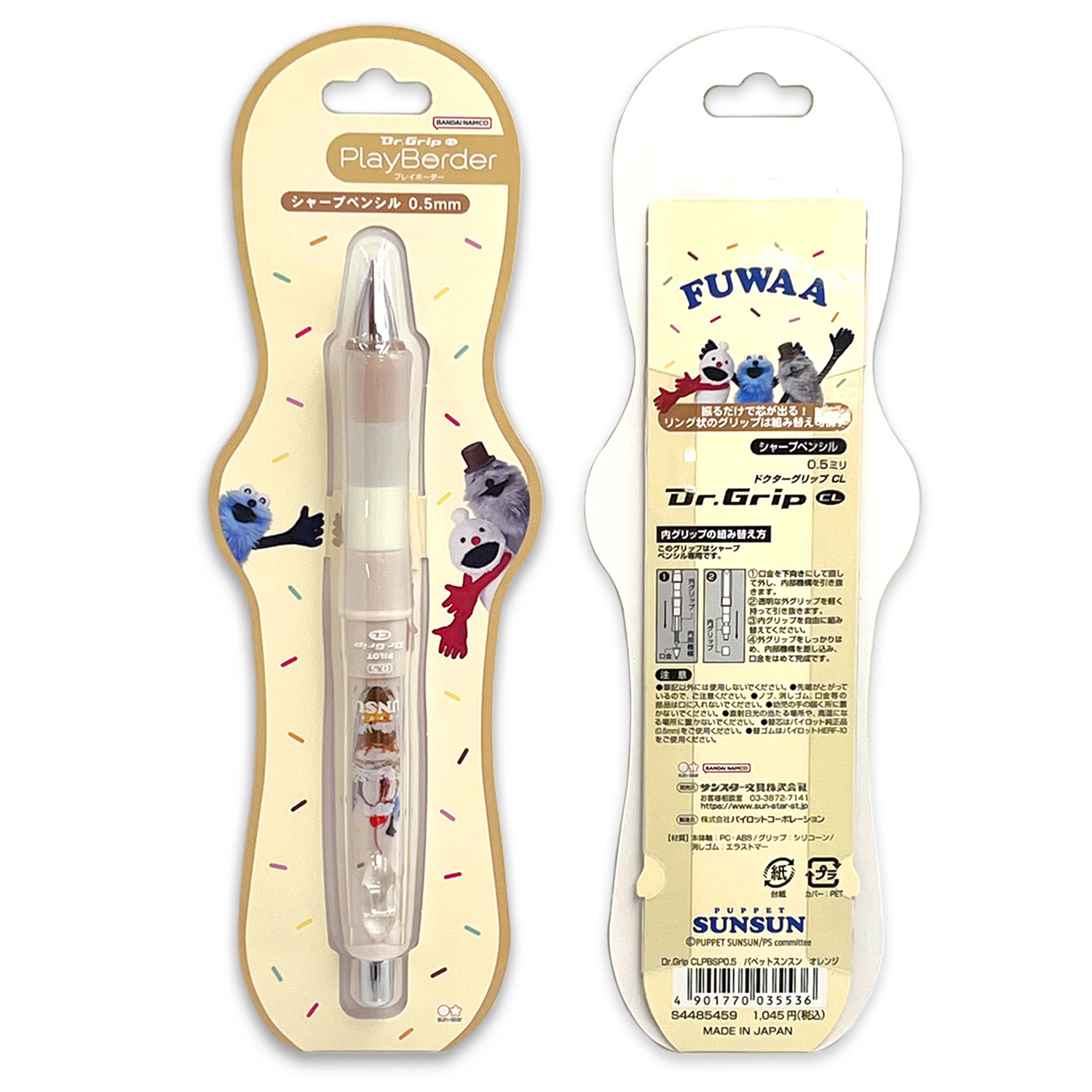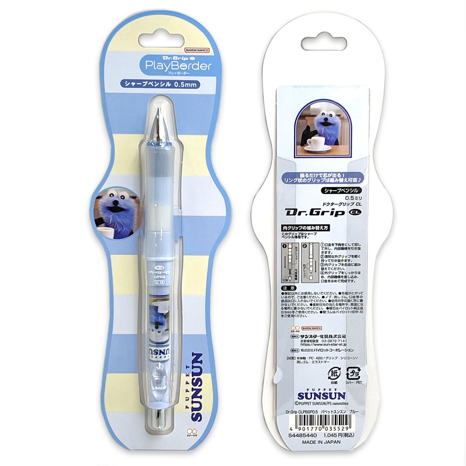 サンスター文具 Dr.GRIPCL PlayBorder シャープペンシル 0.5mm パペットスンスン 【メール便可】 全2色から選択
