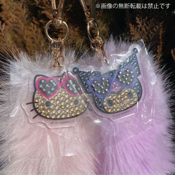 ラインストーン加工されたキティとクロミのアクリルチャームがポイント!