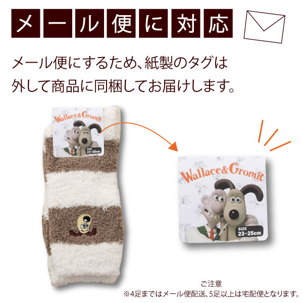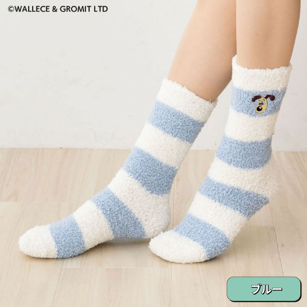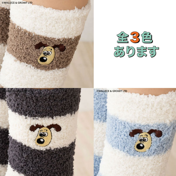 ウォレスとグルミット ワンポイント刺繍 ボーダー ルームソックス 23-25cm 【メール便送料無料】 マシュマロ もこもこ 靴下 助野 ふわふわ 全3色から選択(品番:WG-SOCKS)詳細情報