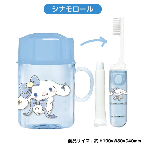 サンリオキャラクターズ 立てられる はみがき セット 1個 【メール便不可】 キティ クロミ シナモン お泊り 合宿 歯ブラシ 歯磨き粉 コップ付き 全3種から選択