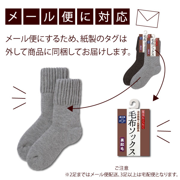 | 足元らくらく 毛布ソックス 靴下 メンズ用 【メール便送料無料】 毛布 ソックス 節電 冬用 遠赤外線 裏起毛 紳士用 シンプル 抗菌 防臭 全2色から選択の詳細画像 |