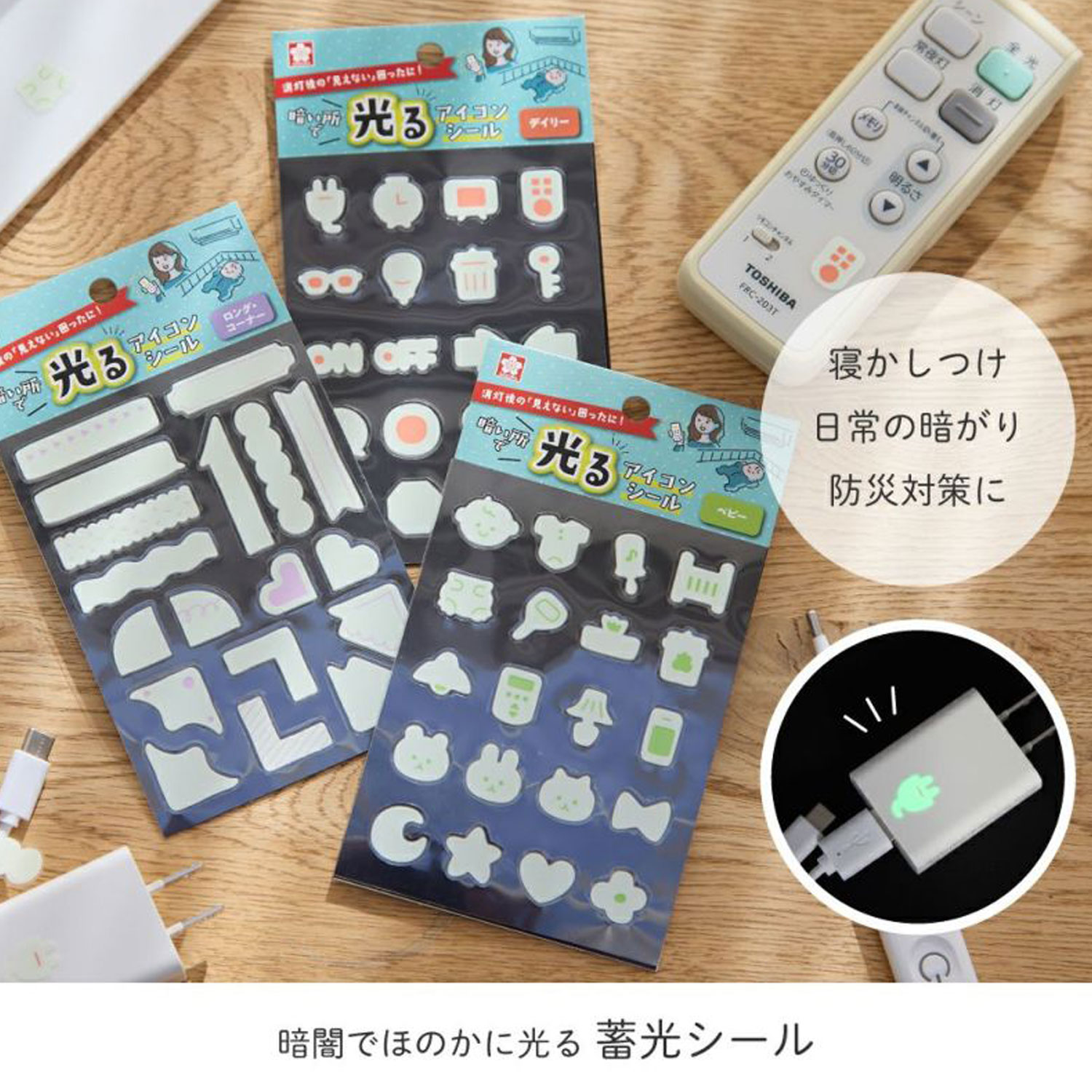 【メール便可】暗いところで探しがちな物や家具の角に貼って見つけやすく!「暗い所で光るアイコンシール」