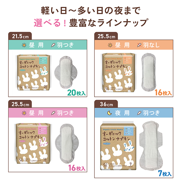 コットンラボ オーガニックコットン ナプキン 羽つき 25.5cm【メール便不可】 16枚入 2個セット(全32枚)関連ページ