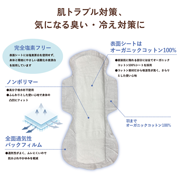 コットンラボ オーガニックコットン ナプキン 昼用 羽つき 安心セットA 【送料無料】21.5cm×2個、25.5cm×1個(43枚) 品番:OCN-3SET-A