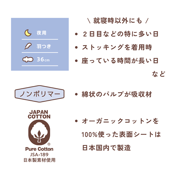 コットンラボ オーガニックコットン ナプキン 羽つき 36.0cm【送料無料】 7枚入 3個セット(全21枚)