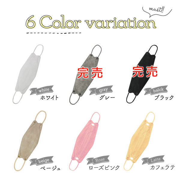 全6色(ホワイト、ブラック・完売、グレー・完売、ベージュ、ローズピンク(限定色)、カフェラテ(限定色)) |