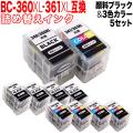 【送料無料、サポート付】キヤノン用 BC-360XL BC-361XL FINEカートリッジ 対応 詰替えインクカートリッジ 互換インク 顔料ブラック&3色カラー×5セット 大容量!