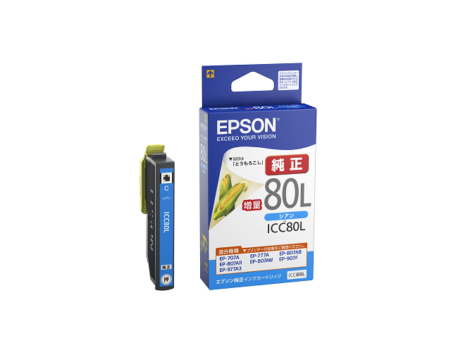 【取り寄せ品】【純正インク】EPSON 純正インク IC80Lインクカートリッジ 増量シアン ICC80L【メール便可】 増量シアン