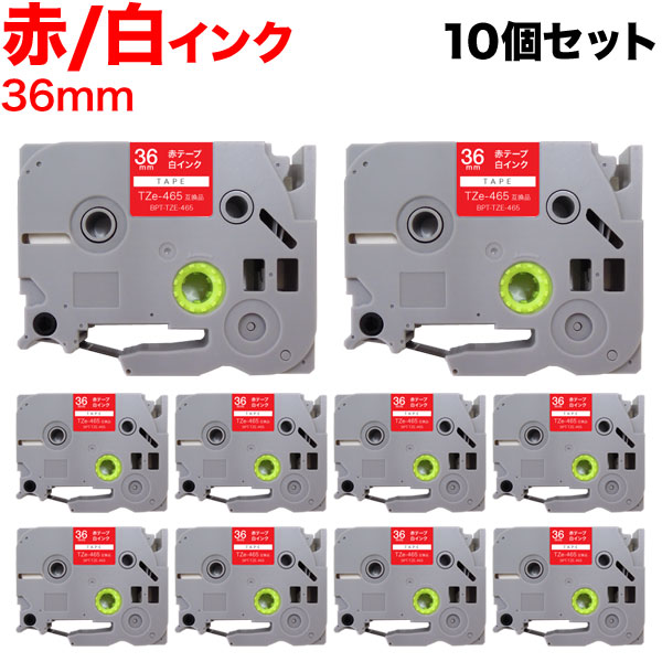 ブラザー用 ピータッチ 互換 テープ TZe-465 ラベルカートリッジ 10個セット ピータッチキューブ対応【送料無料】 36mm/赤テープ/白文字