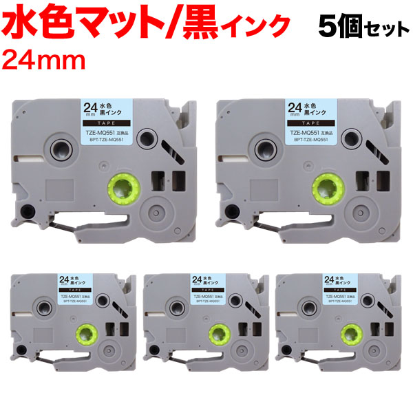 ブラザー用 ピータッチ 互換 テープ TZE-MQ551 おしゃれテープ ラベルカートリッジ ピータッチキューブ対応 5個セット 【メール送料無料】 24mm/水(つや消し)テープ/黒文字