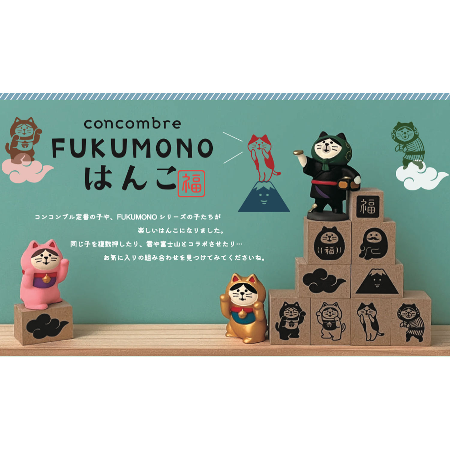 デコレコーポレーション concombre FUKUMONOはんこ 猫 ZCB-359 【メール便可】5種から選択 品番:ZCB-359