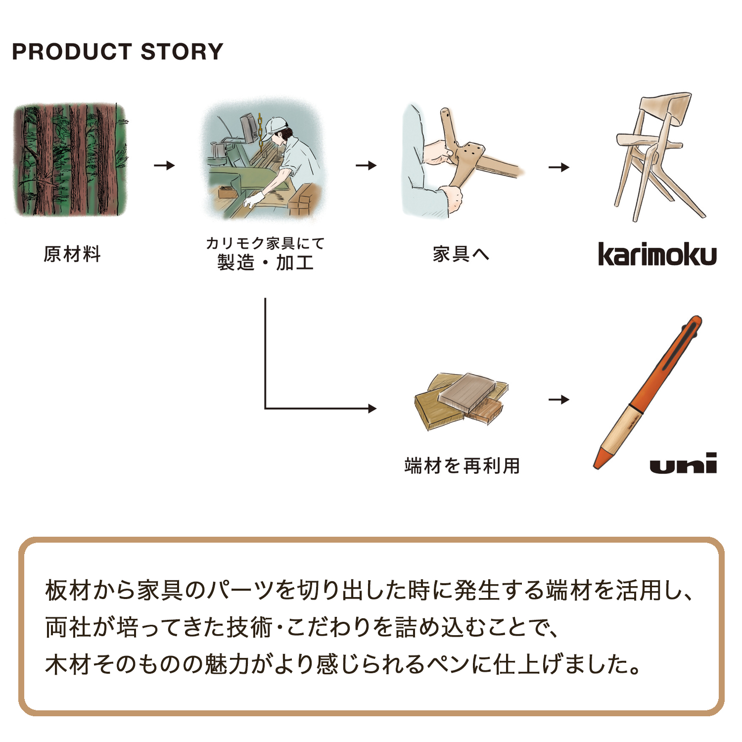 日本を代表する国内生産の木製家具メーカーのカリモク家具とコラボレーションし、