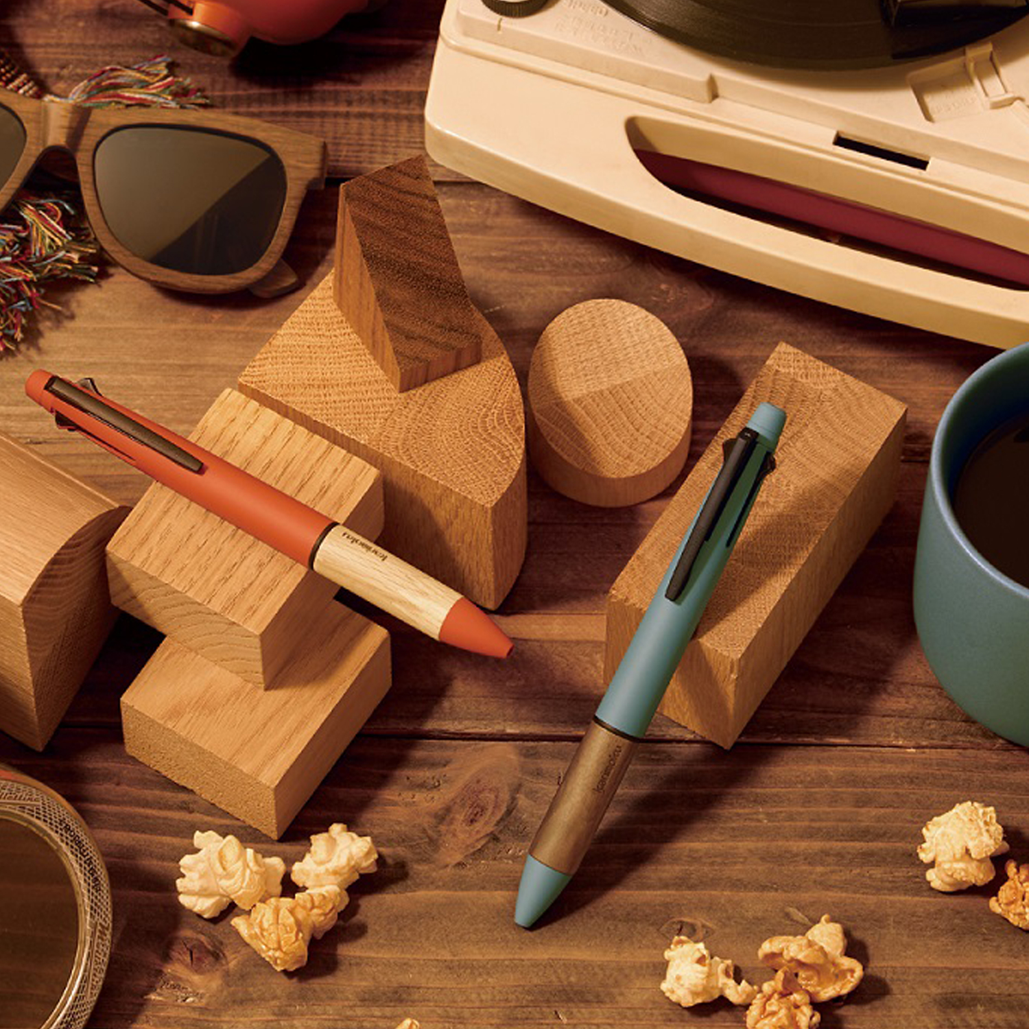 木製家具の製造工程で生まれる木の端材をグリップに再生利用した多機能ペンです。