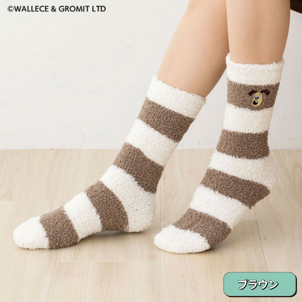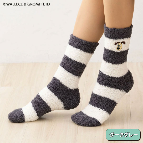 ウォレスとグルミット ワンポイント刺繍 ボーダー ルームソックス 23-25cm 【メール便送料無料】 マシュマロ もこもこ 靴下 助野 ふわふわ 全3色から選択(品番:WG-SOCKS)詳細情報