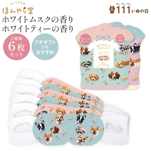 ほんやら堂 ながら 温アイマスク アニマル柄 犬柄 1枚入×6枚セット 【メール便可】 1枚入×6枚セット