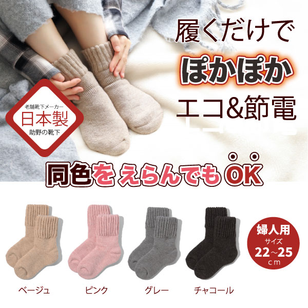 まるで毛布のようなあたたかさ。 履くだけでぽかぽかして、エコ&節電にもなります。 老舗靴下メーカー助野のこだわりの靴下。 お得なフリーチョイス2足セットが登場! 特許番号:5524816号