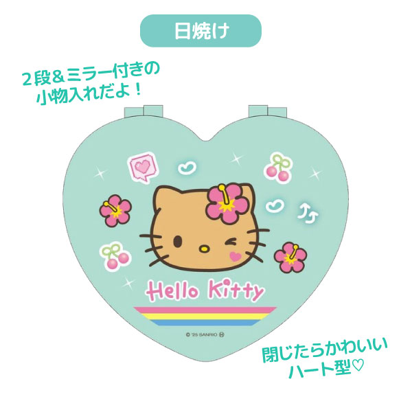 サンリオ ハローキティ ハート型 小物入れ 1個 【メール便不可】 日焼け 花柄 メイク ギャル かわいい 化粧箱 メイク道具 鏡付き 全2種から選択