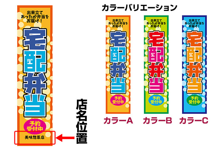 のぼり旗「宅配弁当」短納期 低コスト 【名入れのぼり旗】 納期ご相談ください【メール便可】 450mm幅