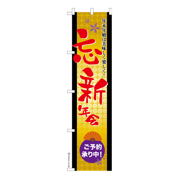 スリム のぼり旗「忘新年会 ご予約承り中2」宴会 既製品のぼり 納期ご相談ください【メール便可】 450mm幅