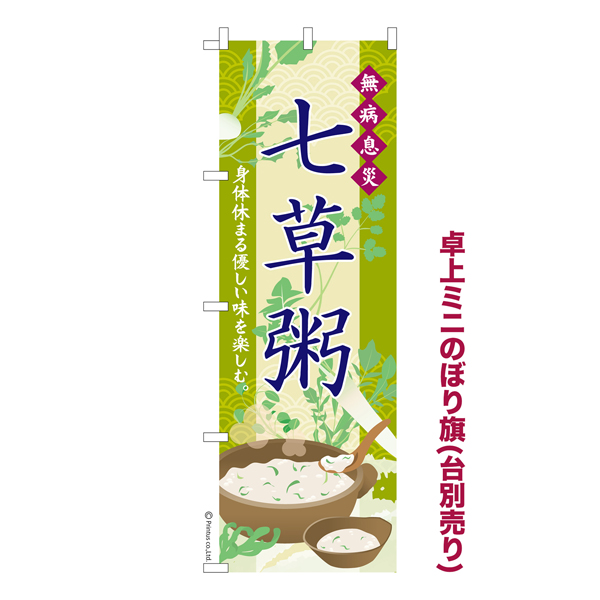 卓上ミニのぼり旗「七草粥2」行事食 既製品卓上ミニのぼり 納期ご相談ください【メール便可】 卓上サイズ13cm幅