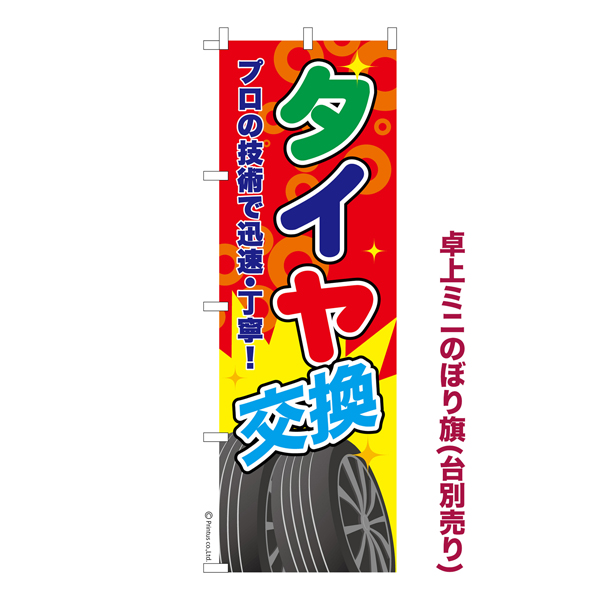 卓上ミニのぼり旗「タイヤ交換3」車バイク 既製品卓上ミニのぼり 納期ご相談ください【メール便可】 卓上サイズ13cm幅