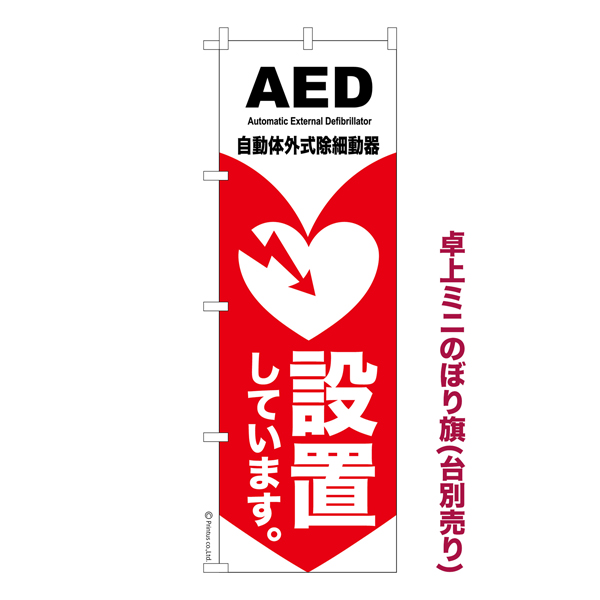 卓上ミニのぼり旗「AED 設置してます2」救命 既製品卓上ミニのぼり 納期ご相談ください【メール便可】 卓上サイズ13cm幅