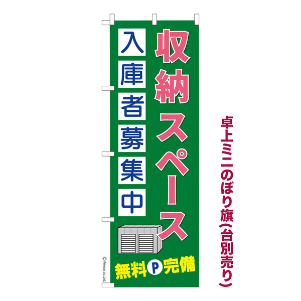 卓上ミニのぼり旗「収納スペース入庫者募集中2」トランクルーム 既製品卓上ミニのぼり 納期ご相談ください【メール便可】 卓上サイズ13cm幅