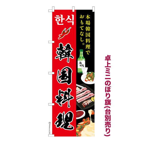 卓上 ミニのぼり旗「韓国料理」朝鮮料理 1枚より 既製品卓上 ミニのぼり 納期相談ください【メール便可】 卓上サイズ13cm幅