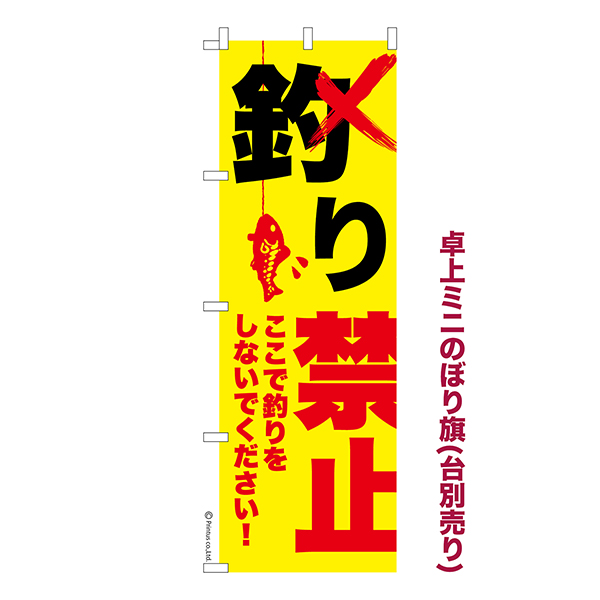 卓上 ミニのぼり旗「釣り禁止」つり禁止 1枚より 既製品卓上 ミニのぼり 納期相談ください【メール便可】 卓上サイズ13cm幅