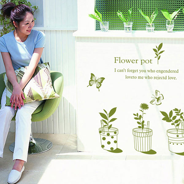 貼ってはがせる簡単ウォールステッカー グリーン・フラワー・ポット グリーン・フラワー・ポット