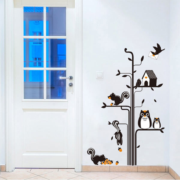 貼ってはがせる簡単ウォールステッカー リスと小鳥 リスと小鳥